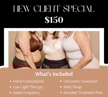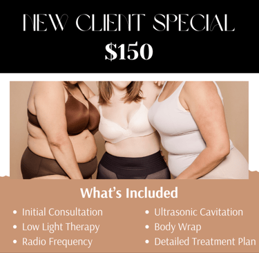 Want to see what it's all about? This is the perfect way to try it out. Designed to be the perfect starting point to achieve your dream body. The new client special begins with a consultation so we can assess your unique needs, goals and lifestyle to create a personalized treatment plan.