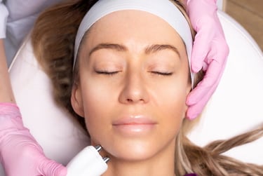 LED light therapy is a non invasive treatment that is absorbed into the surface of the skin at various depths and promotes cellular growth and repair. Great for ageing skin to help stimulate collagen and elastin production to reduce wrinkles. Blue light is most beneficial to treat acne as it has antibacterial properties to prevent future breakouts and decreases oil production. It is even great to help treat Rosacea and reduce redness and inflammation. Pair it with a Hydrojelly mask to see even greater results.